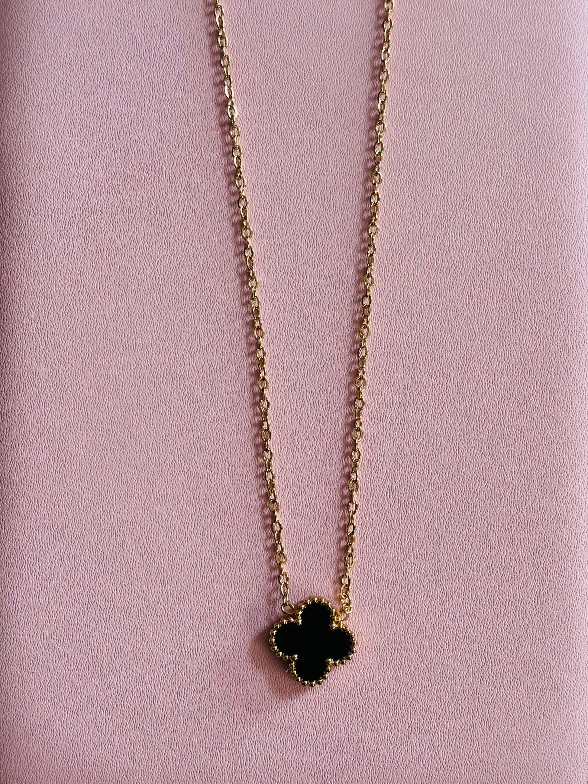 Protect your style with our Black Clover Necklace! Made of durable, stainless steel, this anti-tarnish, demi fine necklace will keep you looking sharp and polished all day. No need to worry about dull or tarnished jewelry, make a statement with our Black Clover Necklace.
