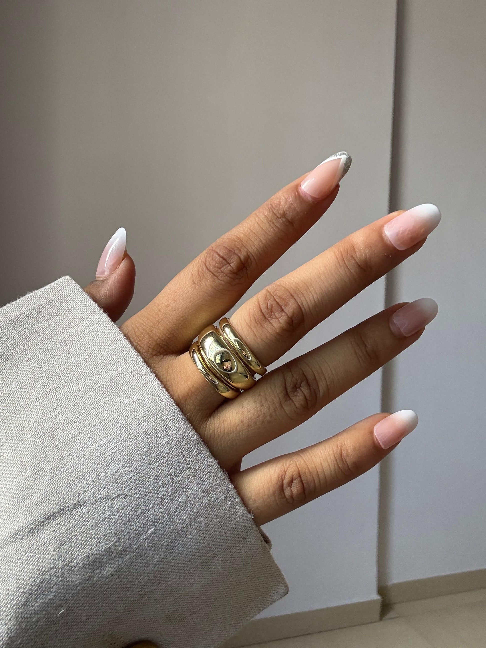 Elevate your everyday style with our Gold Dome Stackable Ring. This chunky, polished gold-toned ring features a smooth, rounded dome design, creating a bold yet timeless look. Perfect for wearing solo as a statement piece or layering with other rings for a chic, stacked effect.
