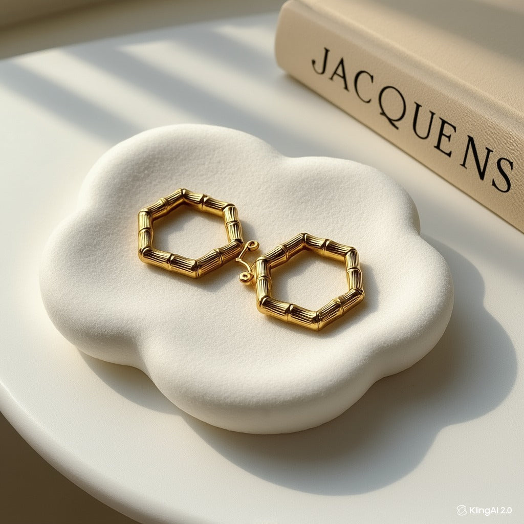 Distinctive bamboo-style hoops with ribbed, geometric segments. A modern and unique statement.