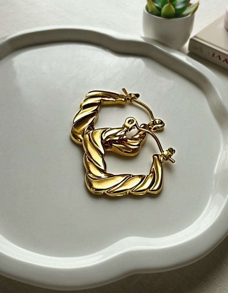 A stunning mix of sculpted gold hoops featuring twisted, heart, and crescent designs. This trio offers the perfect balance of elegance and everyday wear — your go-to for timeless shine and versatility. ✨