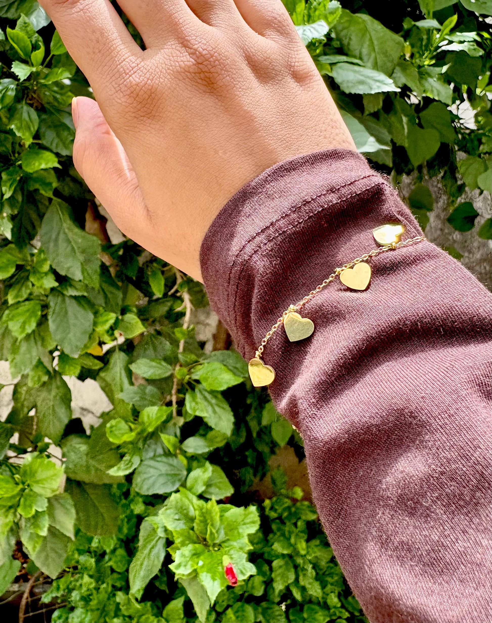 Express your love for charming details with our Dainty Gold Heart Charm Bracelet. This delicate gold-toned chain features multiple tiny, polished gold heart charms gracefully suspended along its length. Perfect for adding a touch of sweet elegance and subtle sparkle to your everyday look, or as a thoughtful gift for someone special.