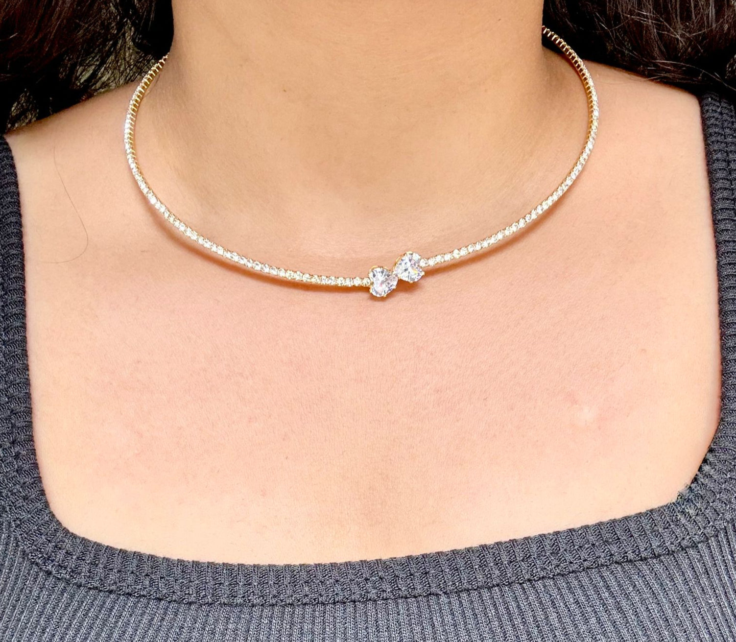 Minimal yet striking — this gold-toned choker features a delicate curved silhouette with twin crystal drops. Lightweight and elegant, it’s your new everyday sparkle for brunches to date nights.