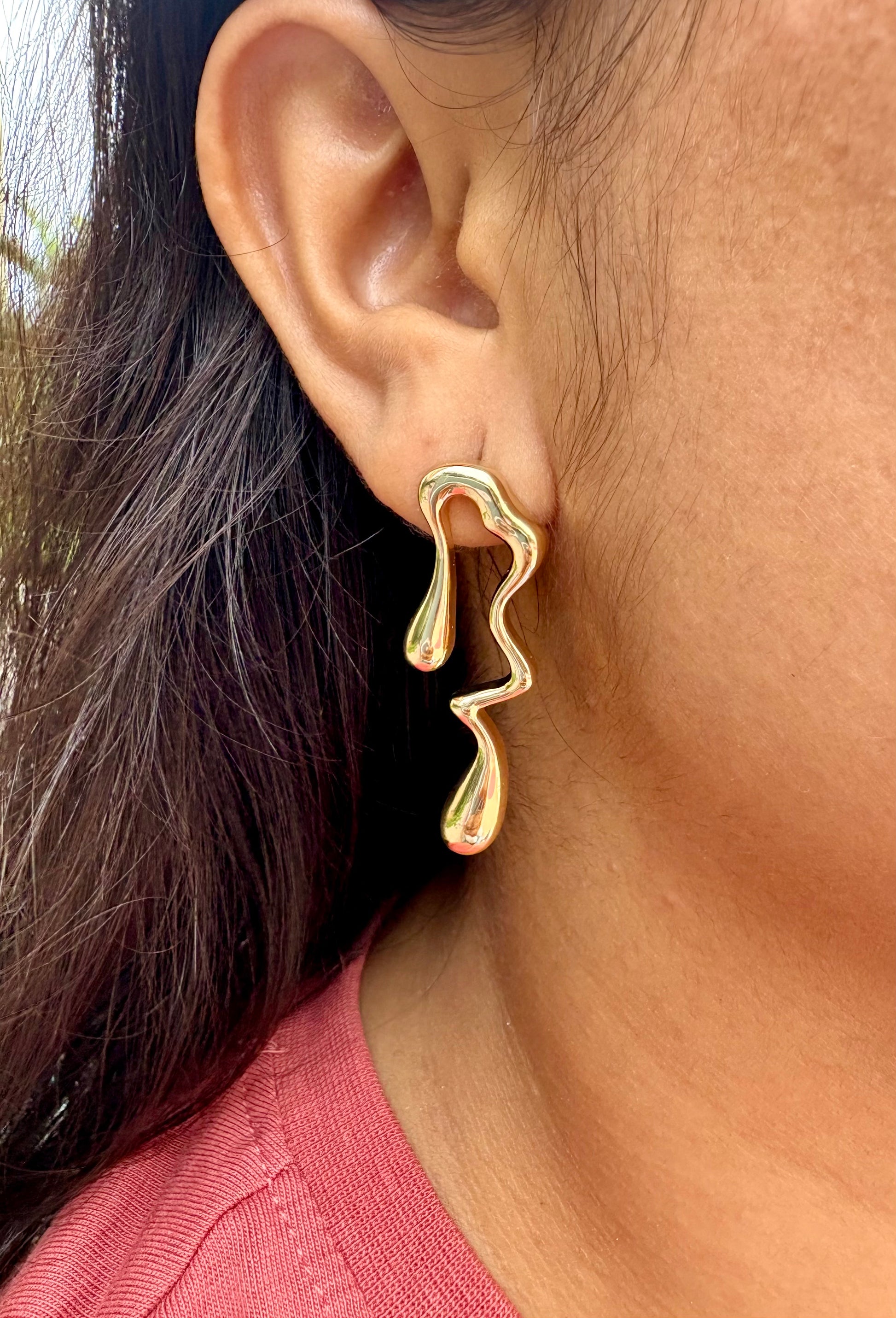 Make a unique statement with our Gold Liquid Drip Abstract Earrings. Their organic, molten-gold design offers a modern, artistic flair, perfect for adding a contemporary edge to any look.